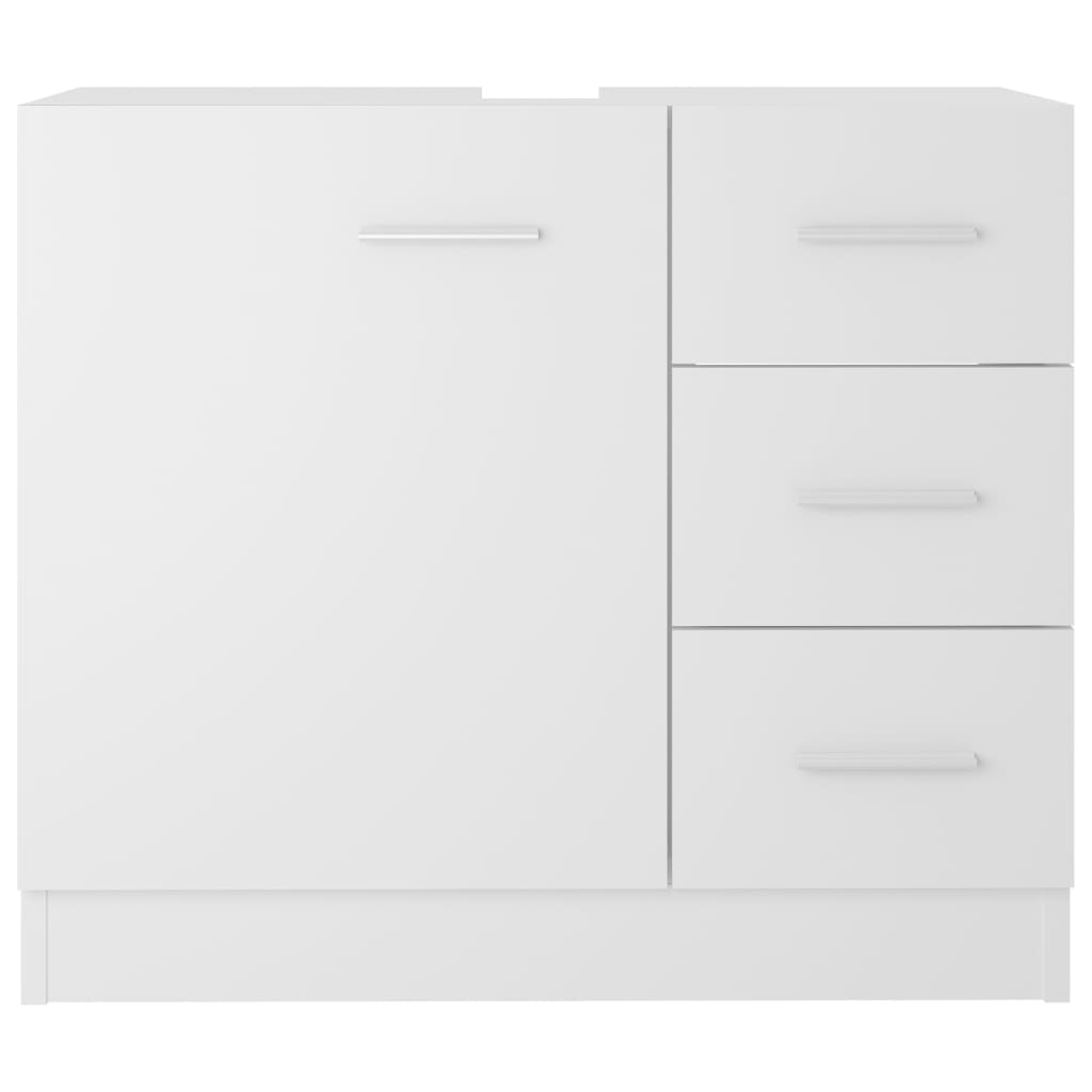 Mit diesem Waschbeckenunterschrank kannst du zusätzlichen Platz in deinem Badezimmer schaffen. Die klaren Linien und das schlanke Design fügen sich perfekt in jedes Badezimmer ein. Dieser Schrank besteht aus Holzwerkstoff und ist daher robust und stabil. Der Waschbeckenunterschrank verfügt über 1 Fach und 3 Schubladen und bietet so verschiedene Aufbewahrungsmöglichkeiten sowie zusätzlichen Platz für eine Vielzahl von Gegenständen in dienem Badezimmer. Die Oberseite des Schranks ist ideal zum Einbauen des Waschbeckens. Zusätzlich ist der Schrank einfach mit einem feuchten Tuch zu reinigen. Bitte beachte: das Waschbecken ist nicht im Lieferumfang enthalten.