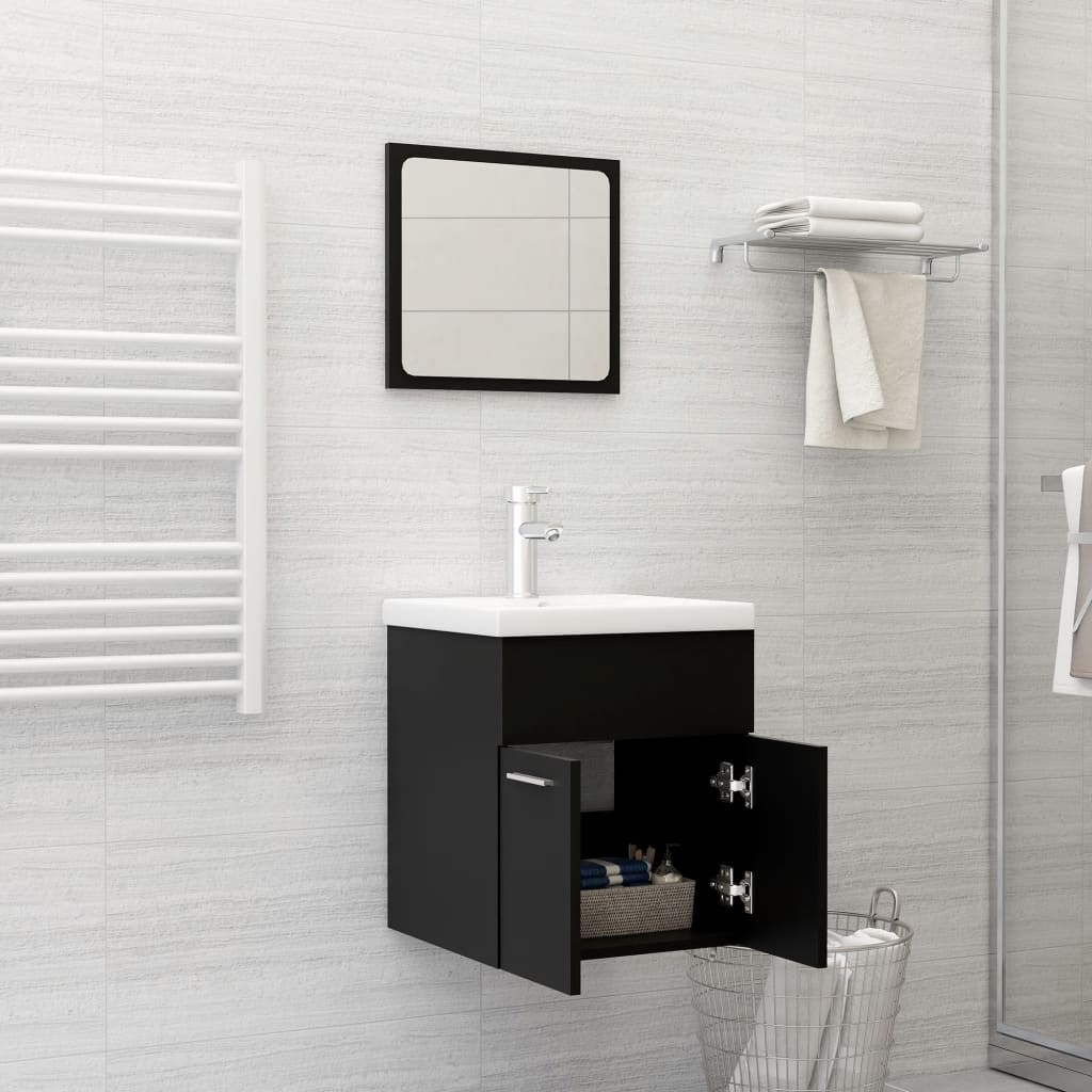 Mit diesem stilvollen Badmöbel-Set schaffen Sie zusätzlichen Stauraum in Ihrem Badezimmer. Die klaren Linien und das schlichte Design fügen sich perfekt in Ihr Bad ein. Das Möbelset mit Spiegel und Schrank besteht aus einem haltbaren und starken Holzwerkstoff. Dieser schicke Schrank verfügt über 1 Fach und 2 Türen und bietet ausreichend Stauraum in Ihrem Badezimmer. Auf dem Bad-Unterschrank kann ein Waschbecken eingebaut werden. Der Spiegel verleiht Ihrer Wohnkultur ein hervorragendes Aussehen. Darüber hinaus lässt sich dieses Badezimmermöbel-Set leicht mit einem feuchten Tuch reinigen. Bitte beachten: das Waschbecken ist nicht im Lieferumfang enthalten.
