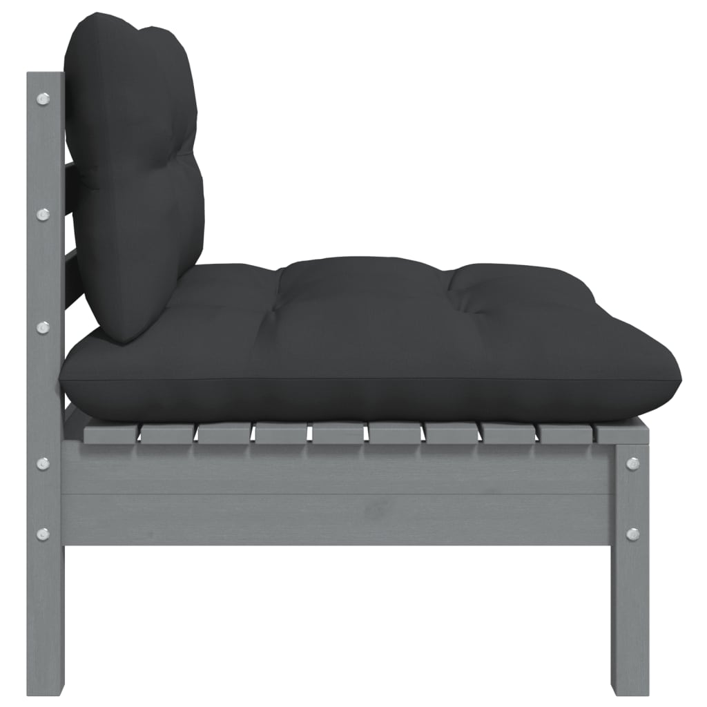 Garten-Mittelsofa mit Anthrazit Kissen Grau Massivholz Kiefer