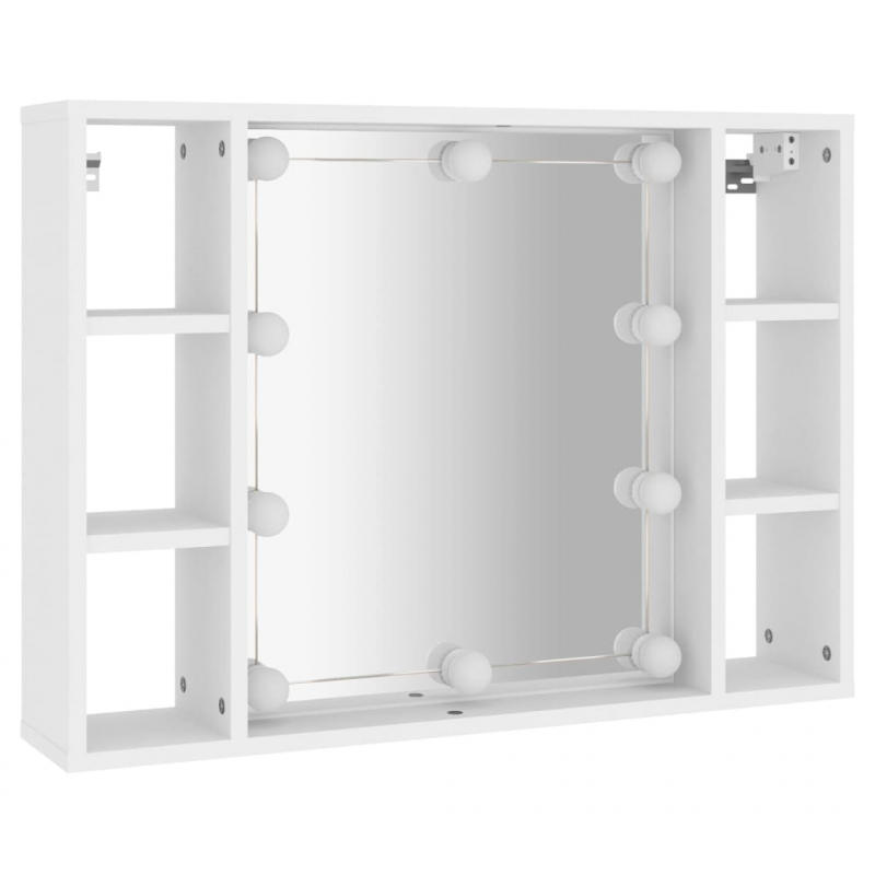 Mit diesem trendigen Spiegelschrank mit LED-Beleuchtung kannst du deine Schminkutensilien ordentlich und griffbereit aufbewahren! Langlebiges Material: Holzwerkstoff ist ein Material hoher Qualität mit glatter Oberfläche, das sich durch Festigkeit, Stabilität und Feuchtigkeitsbeständigkeit auszeichnet. Aus Holzwerkstoff gefertigt, lässt sich dieser Spiegelschrank mit LEDs leicht reinigen.Praktischer Spiegel: Der schöne Spiegel bietet eine klare Sicht beim Auftragen von Make-up und verleiht dem Badschrank eine elegante Note.LED-Leuchten: Der Wandschrank verfügt über LED-Lampen, die mit einer USB-Schnittstelle ausgestattet sind, was eine bequeme Bedienung gewährleistet.Viel Stauraum: Dieser Spiegelschrank verfügt über sechs Fächer, die reichlich Platz zur ordentlichen Aufbewahrung deiner Sachen bieten.Wandmontage: Dieser LED-Badschrank lässt sich an der Wand befestigen. Auf diese Weise kannst du deine Bodenfläche maximieren und für Ordnung im Raum sorgen. Hinweis:Jedes Produkt wird mit einer Montageanleitung in der Verpackung für eine einfache Montage geliefert.Schrauben und Dübel für die Wandbefestigung sind nicht enthalten. Suchen und verwenden Sie die für Ihre Wände geeigneten Schrauben und Dübel. Wenn Sie unsicher sind, suchen Sie professionelle Hilfe. Lesen und befolgen Sie jeden Schritt der Anleitung sorgfältig.
