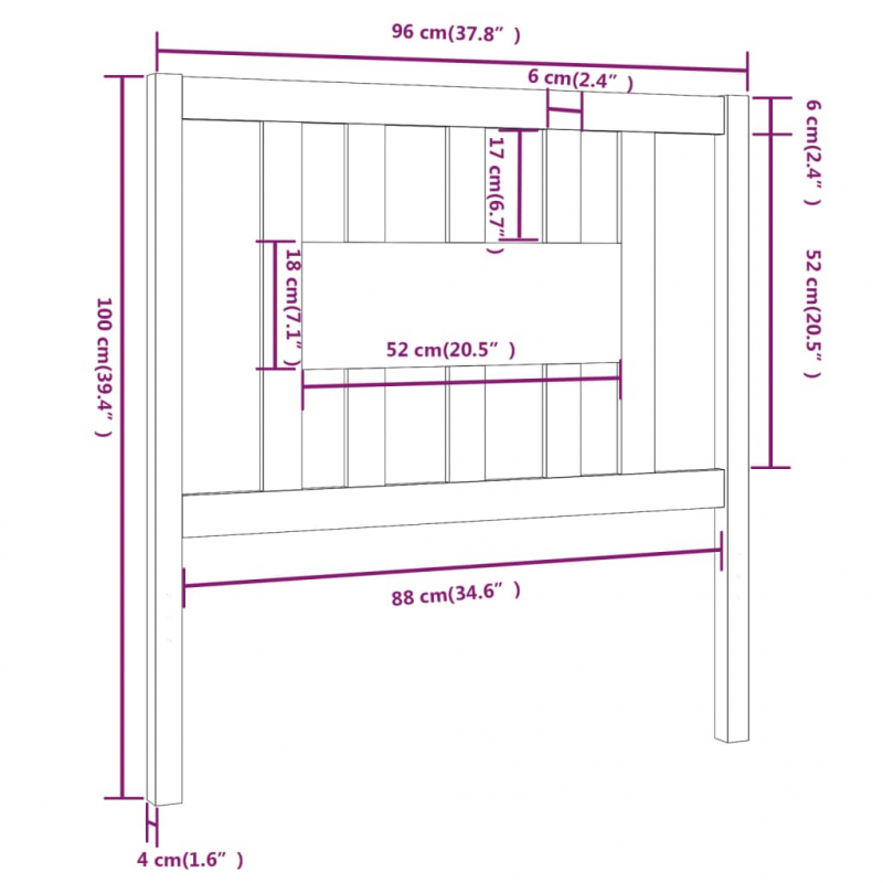 Kopfteil Grau 96x4x100 cm Massivholz Kiefer