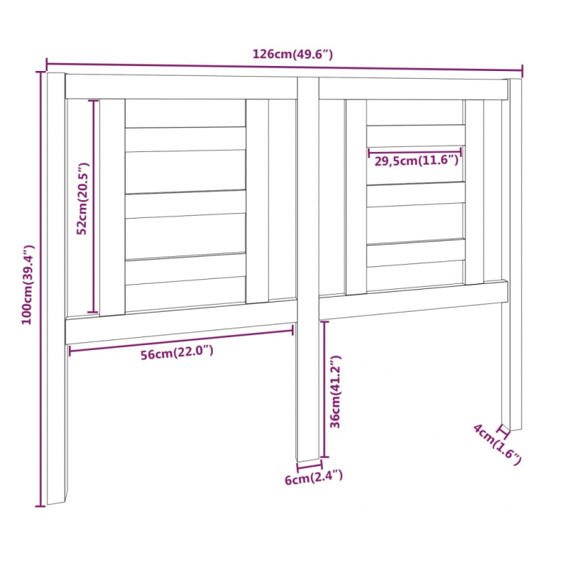 Kopfteil Grau 126x4x100 cm Massivholz Kiefer