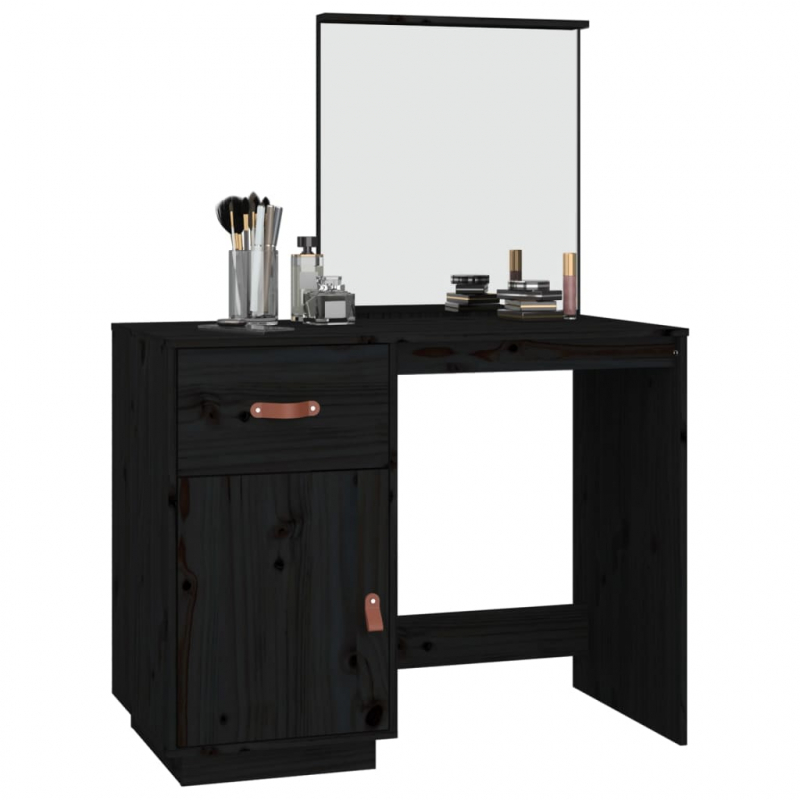Schminktisch Schwarz 95x50x134 cm Massivholz Kiefer
