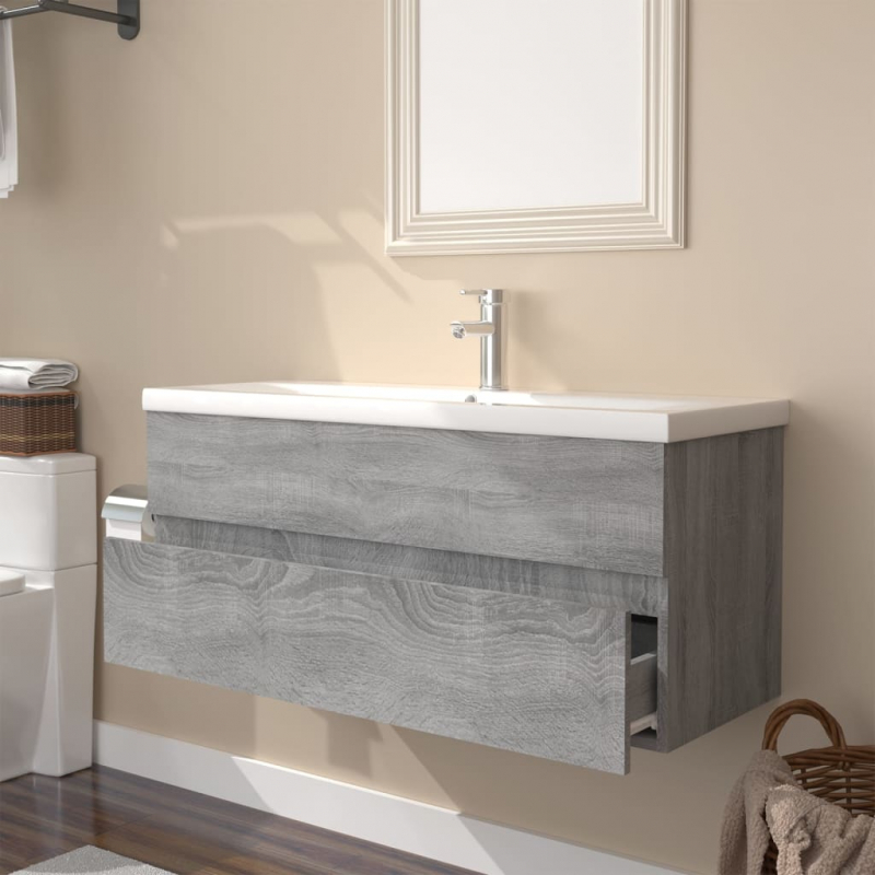 Waschbeckenschrank mit Einbaubecken Grau Sonoma Holzwerkstoff