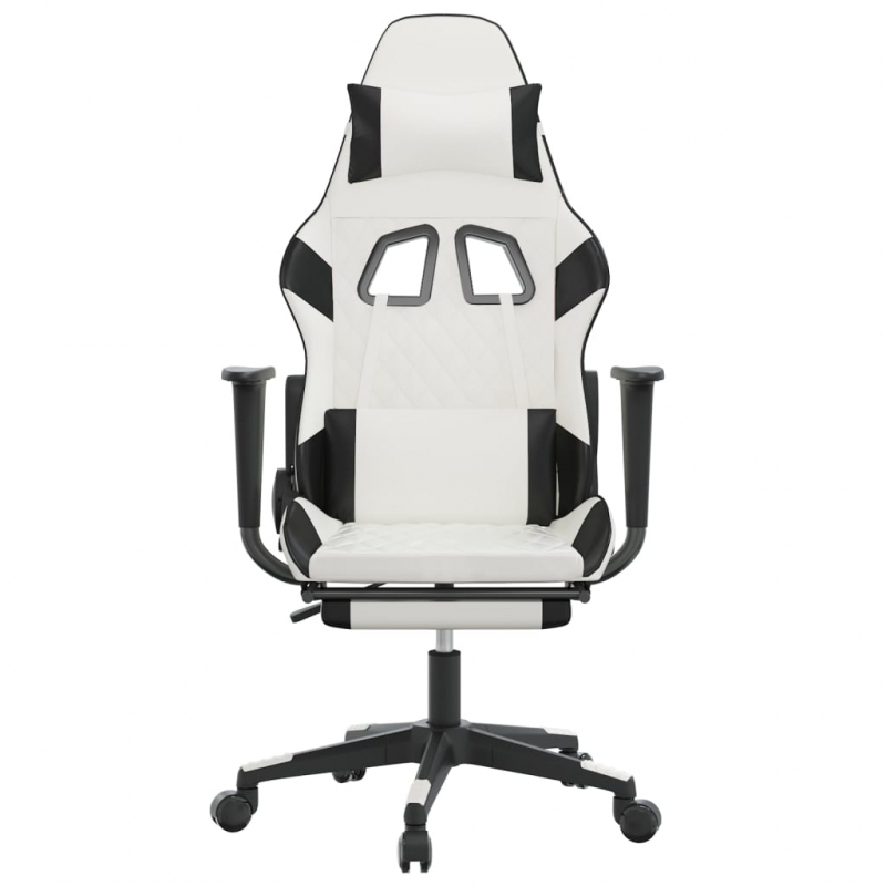 Gaming-Stuhl mit Massage & Fußstütze Weiß & Schwarz Kunstleder