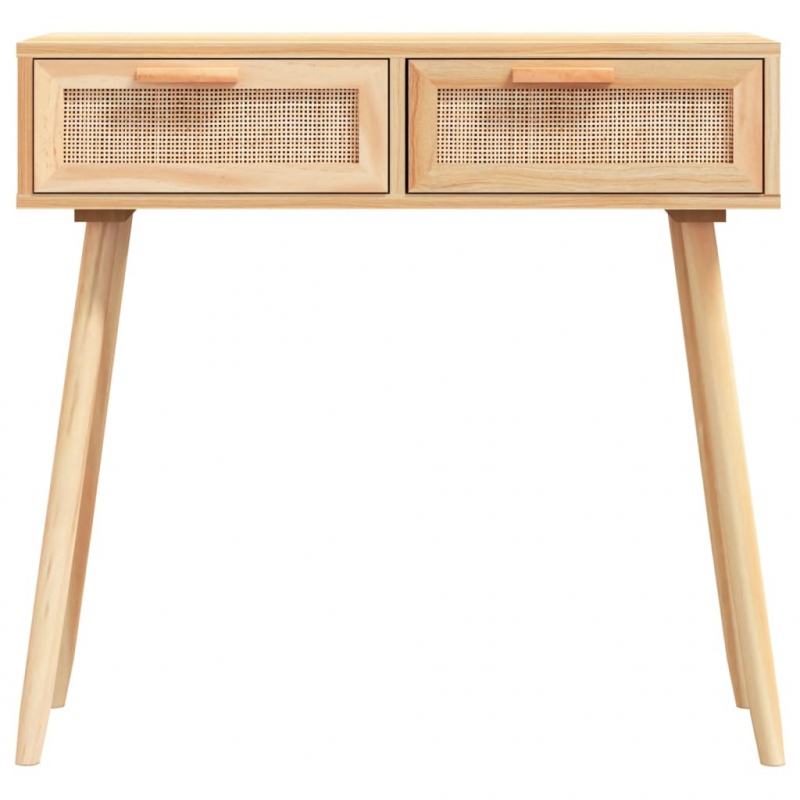 Verleihe deinem Zimmer einen skandinavischen Touch mit diesem Konsolentisch! Er ist eine praktische und dekorative Ergänzung für dein Zuhause. Langlebiges Material: Holzwerkstoff ist ein Material von außergewöhnlicher Qualität mit glatter Oberfläche, das sich durch Festigkeit, Stabilität und Feuchtigkeitsbeständigkeit auszeichnet.Viel Stauraum: Mit 2 Schubladen versehen, bietet der Tisch reichlich Stauraum, um verschiedene Alltagssachen gut organisiert und in Reichweite aufzubewahren. Außerdem fügt das natürliche Rattan-Webdesign zusätzliche Schönheit hinzu.Beine aus massivem Kiefernholz: Die Holzbeine verleihen dem Flurtisch eine natürliche und angenehme Optik und sorgen für Stabilität. Daher fügt sich der Tisch harmonisch in jede Inneneinrichtung ein.Stabile Tischplatte: Die robuste Tischplatte bietet den perfekten Platz, um Topfpflanzen, Fotorahmen und anderen Dekoartikel zur Schau zu stellen. Hinweis:Jedes Produkt wird mit einer Montageanleitung in der Verpackung für eine einfache Montage geliefert. Achtung:Um das Umkippen zu verhindern, muss dieses Produkt mit der mitgelieferten Wandhalterung gesichert werden.