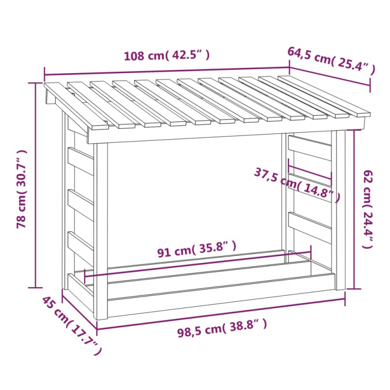 Dieses Kaminholzregal aus Holz bietet die ideale Lösung für die ordentliche Lagerung deines Brennholzes. Massives Kiefernholz: Massives Kiefernholz ist ein wunderschönes Naturmaterial. Kiefernholz weist eine gerade Maserung auf und die Aststellen verleihen dem Material seine charakteristische, rustikale Optik.Viel Stauraum: Dieser Holzspeicher fasst genügend Scheite, um das Feuer schön brennen zu lassen und im Winter stets für Wärme zu sorgen.Trockenes Brennholz: Der Brennholzhalter hält die Scheite vom Boden fern und ermöglicht so eine bessere Luftzirkulation, um das Brennholz vor Fäulnis zu schützen und es trocken zu halten. Hinweis:Jedes Produkt wird mit einer Montageanleitung in der Verpackung für eine einfache Montage geliefert.Das Dach ist nicht vollständig geschlossen und wasserbeständig.