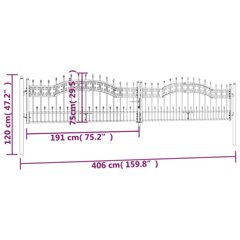 Zauntor mit Speerspitzen Schwarz 406x120 cm Stahl