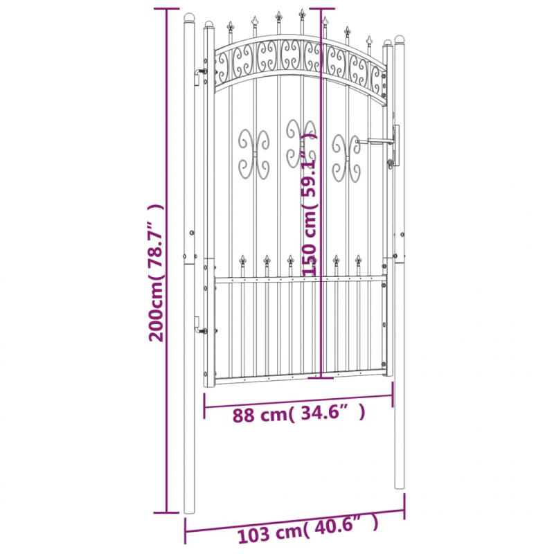 Dieses hochwertige, stilvolle Zauntor ist zum Schutz vor Rost und Korrosion pulverbeschichtet, was es zum idealen Eingang für den Zaun deines Gartens oder deiner Terrasse macht. Langlebiges Material: Aus pulverbeschichtetem Stahl gefertigt, ist das Gartentor äußerst stabil, robust und langlebig.Hohe Sicherheit: Mit seinem eleganten, gewölbten Oberteil und den robusten, horizontalen Streben, die den Rahmen verstärken, bietet das Tor ein hohes Maß an Sicherheit und bildet auch einen beeindruckenden Eingang zu deinem Grundstück.Schnellverschluss: Das robuste Verschlusssystem mit 3 passenden Schlüsseln sorgt für zusätzliche Sicherheit in deinem Garten. Hinweis:Jedes Produkt wird mit einer Montageanleitung in der Verpackung für einen einfachen Zusammenbau geliefert.