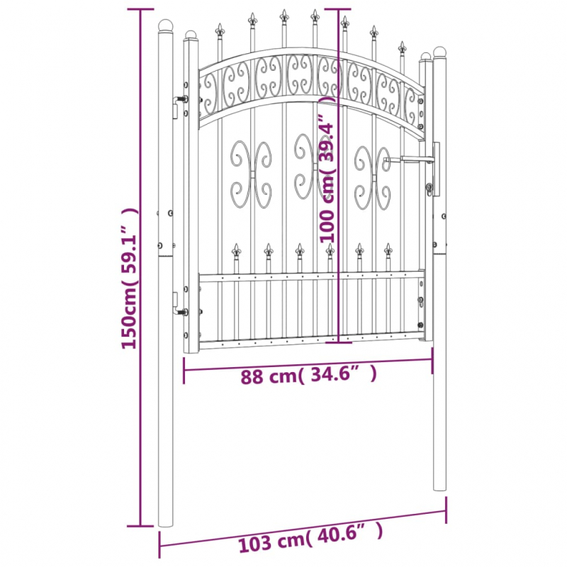 Zauntor mit Speerspitzen Schwarz 103x150 cm Stahl