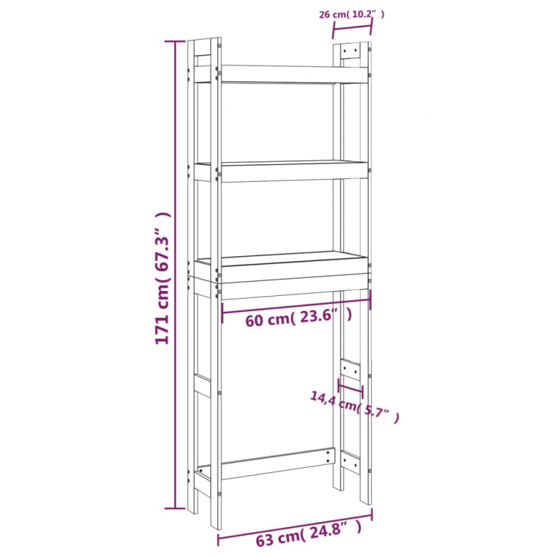 Maximiere den Platz in deinem Badezimmer und sorge für ein stilvolles Ambiente mit diesem Badregal aus Holz! Massives Kiefernholz: Massives Kiefernholz ist ein wunderschönes Naturmaterial. Kiefernholz weist eine gerade Maserung auf und die Aststellen verleihen dem Material seine charakteristische, rustikale Optik.Platzsparend: Das Regal nutzt den freien Platz über der Toilette oder der Waschmaschine und fügt sich leicht und ordentlich in kleinere Räume ein, was es perfekt für kleine Badezimmer macht.Viel Stauraum: Das Badezimmerregal verfügt über 3 Ablagen, die viel Platz für Waschmittel, Waschpulver, Shampoo, Badegel usw. bieten. Achtung:Um das Umkippen zu verhindern, muss dieses Produkt mit der mitgelieferten Wandhalterung gesichert werden. Hinweis:Jedes Produkt wird mit einer Montageanleitung in der Verpackung für einen einfachen Zusammenbau geliefert.Schrauben und Dübel für die Wandbefestigung sind nicht enthalten. Suchen und verwenden Sie die für Ihre Wände geeigneten Schrauben und Dübel. Wenn Sie unsicher sind, suchen Sie professionelle Hilfe. Lesen und befolgen Sie jeden Schritt der Anleitung sorgfältig.