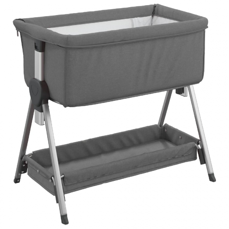 Babybett mit Matratze Dunkelgrau Leinenstoff