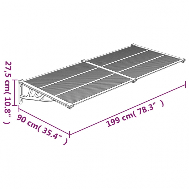Dieses exquisite Türvordach bietet eine einfache Lösung, um deinen Eingang vor Regen, Schnee, Hagel und anderen schlechten Wetterbedingungen zu schützen. Langlebiges Material: Aus Polycarbonat-Hohlkammerplatten gefertigt, ist das Türvordach unglaublich haltbar, wetterfest und korrosionsbeständig.Stabiler Rahmen: Die solide Konstruktion mit starken ABS-Bügeln und Aluminiumstangen ist äußerst stabil und bietet einen sicheren Halt.Einfache Montage: Das erforderliche Montagezubehör ist im Lieferumfang enthalten, sodass sich das Vordach schnell und einfach montieren lässt. Gut zu wissen:Das Produkt kann bei Ein- oder Zweifamilienhäusern verwendet werden.Um die Montage so einfach wie möglich zu machen, wird jedes Produkt mit einer Anleitung geliefert. Hinweis:Dieses Türvordachs hält starkem Schneefall nicht stand.
