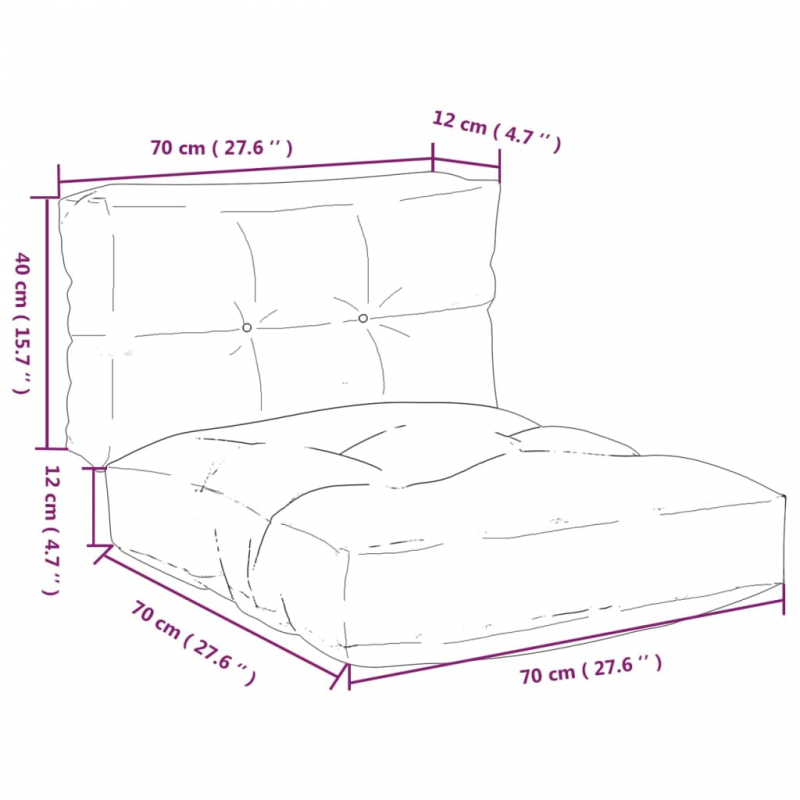 • Abmessungen des Sitzkissens: 70 x 70 x 12 cm (L x B x H)