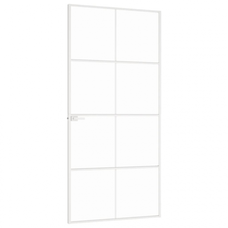 Schaffe mit dieser Innentür einen stilvollen Übergang von einem Raum zum anderen! Starkes Material: Dank der intelligenten Struktur ist gehärtetes Glas stärker und langlebiger als jedes andere Glas. Hartglas ist dafür bekannt, Einwirkungen wie starken Stößen, Kratzern, Schlägen usw. standzuhalten.Stabiler Rahmen: Der Aluminiumrahmen sorgt für Robustheit und Stabilität.Große Glas-Paneele: Die großen Glasscheiben aus gehärtetem Glas lassen Licht durch und machen diese Tür zu einer idealen Wahl für die Schaffung eines hellen Wohnraums.Schlankes Design: Der schlanke Aluminiumrahmen verleiht der Innentür ein modernes und luxuriöses Aussehen. Hinweis:Diese Innentür sollte im 35-50 mm Türrahmen eingebaut werden. Gut zu wissen:Um die Montage so einfach wie möglich zu machen, wird jedes Produkt mit einer Anleitung geliefert.