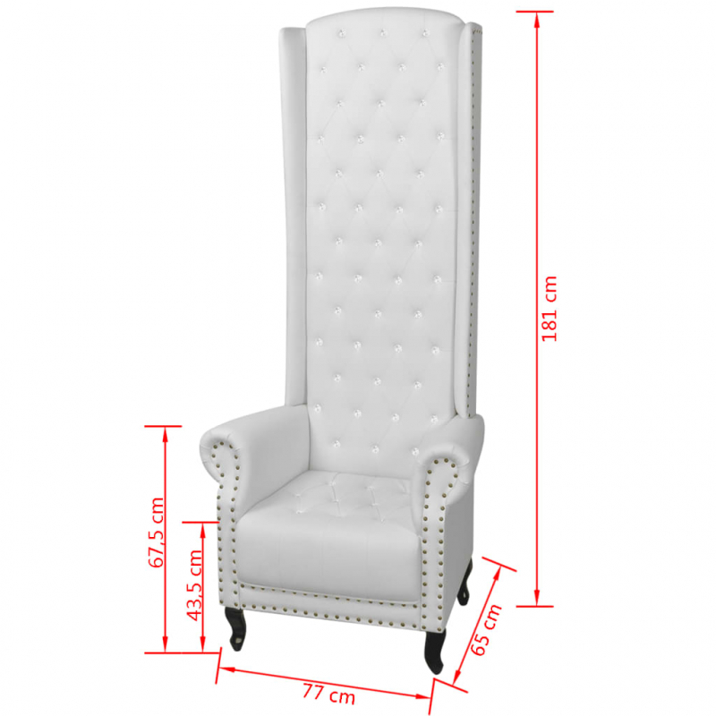 Dieses aufwändig gestaltete Möbelstück vermittelt das Gefühl von Luxus und Komfort mit seiner ultrahohen Rückenlehne und der weich gesteppten Polsterung. Glänzende Kristall-Knöpfe in Diamantform zieren sowohl die Rückenlehne als auch die Sitzfläche. Mit Kunstleder bezogen und mit Schaumstoff gepolstert, ist dieser prachtvolle Stuhl sehr bequem, langlebig und komfortabel. Der Stuhl lässt sich im Wohn- oder Schlafzimmer verwenden. Durch sein kompaktes und schlankes Design nimmt er kaum Platz ein und verleiht jedoch jedem Zimmer eine stilvolle Note.