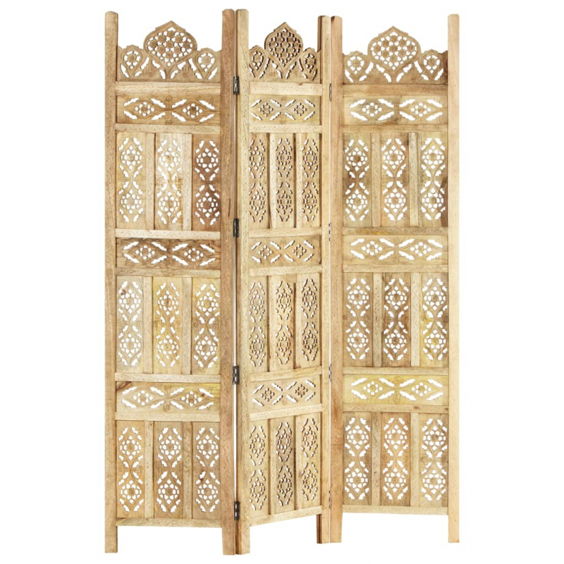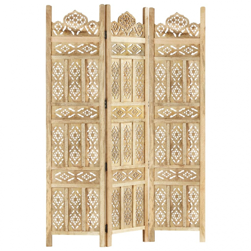 3-tlg. Raumteiler Handgeschnitzt 120×165 cm Mango Massivholz