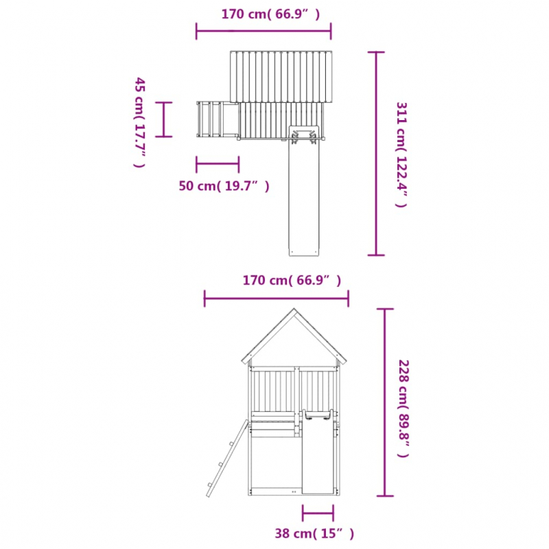 Möchtest du deinen Kindern ihren eigenen Spielplatz schenken? Dieser Spielplatz aus Holz ermöglicht fantasievolle Abenteuer im eigenen Garten! Langlebiges Material: Dieser Spielturm mit Kletterwand ist aus massivem Kiefernholz gefertigt. Massives Kiefernholz ist ein schönes Naturmaterial. Kiefernholz weist eine gerade Maserung auf und die Aststellen verleihen dem Material seine charakteristische, rustikale Optik.Robust und stabil: Der Holzrahmen sorgt für Robustheit und Stabilität.Spielzentrum: Der Spielturm verfügt über eine 90 cm hohe Plattform, eine Wellenrutsche, eine Leiter sowie einen Sandkasten. So können deine Kleinen auch ihre Freunde zum Mitspielen einladen.Durchdachtes Design: Die umlaufenden Holzgeländer gewährleisten die Sicherheit der Kinder beim Spielen. Zudem spendet das Holzdach an heißen Sommertagen Schatten.Unendlicher Spaß: Dieses lustige Spielhaus aus Holz bietet deinen Kindern und ihren Freunde die perfekte Möglichkeit, Spaß zu haben, nach Herzenslust zu spielen und tolle Erinnerungen fürs Leben sammeln! Achtung:Nur für den HausgebrauchFür den Außenbereich Nicht geeignet für Kinder unter 3 Jahren Empfohlenes Benutzeralter: 3-8 Jahre Hinweis:Das Produkt muss zur Verringerung der Kippgefahr verankert werden; Anker sind nicht im Lieferumfang enthalten. Gut zu wissen:Um die Montage so einfach wie möglich zu machen, wird jedes Produkt mit einer Anleitung geliefert.