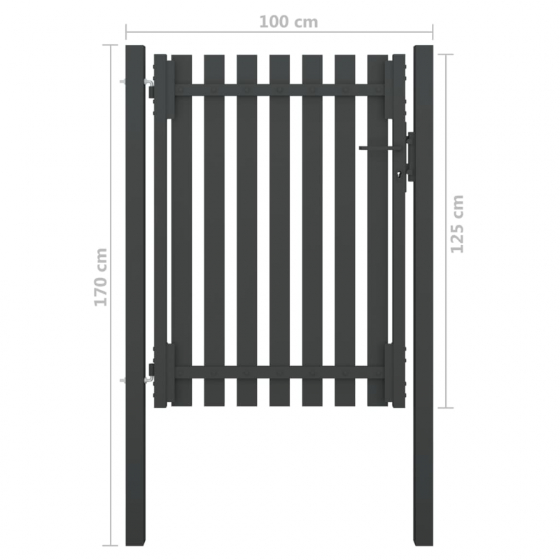Dieses Zauntor bildet einen zeitgemäßen, stilvollen und praktischen Eingang, um Ihren Garten von der Außenwelt abzugrenzen. Äußerst stabil und langlebig, bildet es eine praktische Sicherheitsbarriere für Ihren Garten, Hof oder Ihre Terrasse. Dank seines verstärkten Flachrohrrahmens bietet unser Gartentor ein hohes Maß an Sicherheit und bildet gleichzeitig einen fabelhaften Eingang zu Ihrem Grundstück. Das Tor ist aus hochbelastbarem Stahl gefertigt und gegen Rost und Korrosion pulverbeschichtet. Darüber hinaus ist es mit einem Verriegelungssystem ausgestattet und wird samt zwei robusten Pfosten und stabilen Scharniere zur einfachen Montage geliefert.