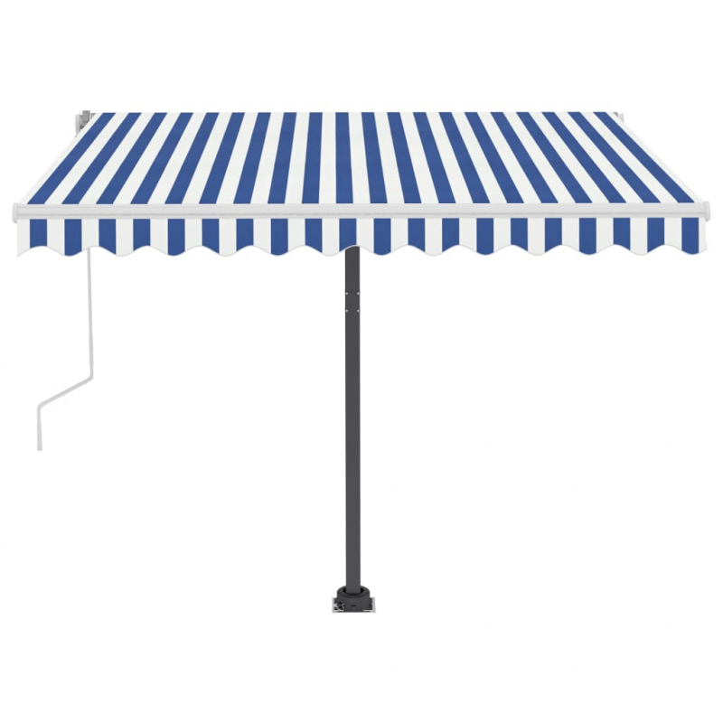Schaffe einen angenehmen und kühlen Platz in deinem Außenbereich mit dieser einziehbaren Markise! Mit einem rostfreien, pulverbeschichteten Aluminiumrahmen ausgestattet, ist diese Outdoor-Markise leicht und dennoch robust. Der Markisenstoff besteht aus hochdichtem Polyester mit PU-Beschichtung, das UV-beständig und wasserfest ist. Der Winkel und die Höhe der Markise lassen sich an deine Bedürfnisse anpassen. Du kannst diesen Sonnenschutz mittels der langen Kurbel leicht ein- und ausfahren. Darüber hinaus sorgen die solarbetriebenen LED-Leuchten im Dunkel für eine energiesparende Beleuchtung. Das robuste Gestell dieser freistehenden Markise kann um 360 Grad gedreht werden und bietet so ein Höchstmaß an Verstellmöglichkeiten.