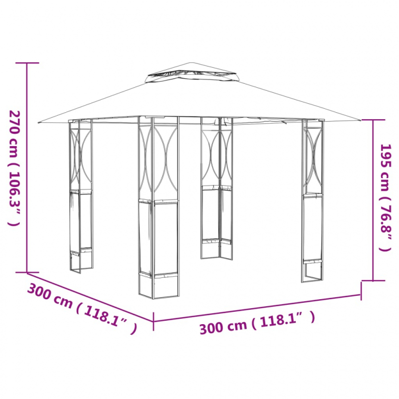 Möchtest du an einem heißen Sommertag oder an einem regnerischen Tag eine angenehme, entspannte Zeit mit deiner Familie und deinen Freunden im Freien verbringen? Dann ist dieser trendige Pavillon genau das Richtige für dich! Stahlrahmen: Stahl ist ein außergewöhnlich hartes und starkes Material. Er bietet Robustheit und Stabilität. Viel Platz: Dieser Gartenpavillon bietet reichlich Platz für Treffen mit Familie und Freunden, ohne überfüllt zu wirken.Doppeldach: Das Doppeldach mit PA-Beschichtung ist wasserabweisend und sorgt zudem für eine hervorragende Luftzirkulation, um die Stabilität der Struktur bei Wind zu gewährleisten.Breite Anwendung: Dieser Party-Pavillon eignet sich perfekt für Familienfeiern, Picknicks, Partys, Hochzeiten usw. und verleiht deinem Garten eine elegante Note. Gut zu wissen:Um die Montage so einfach wie möglich zu machen, wird jedes Produkt mit einer Anleitung geliefert.