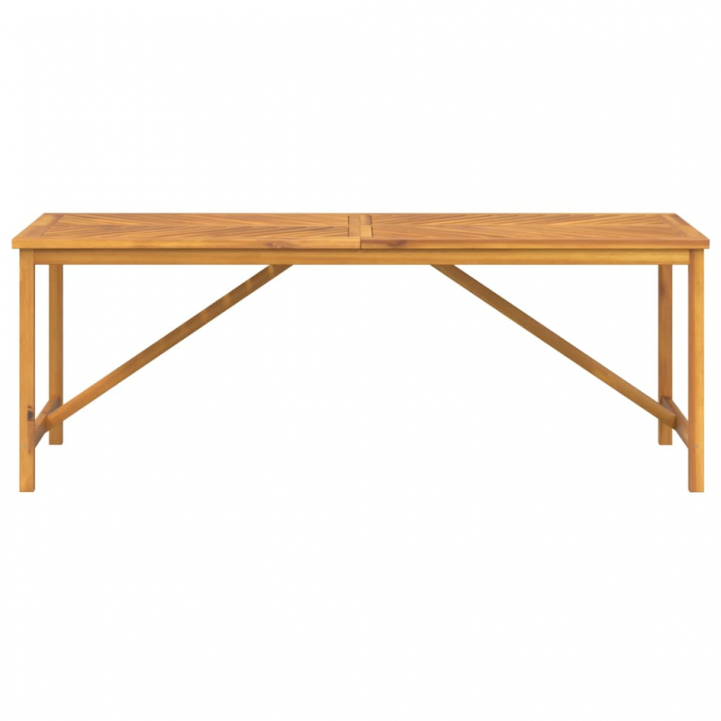 Dieser Garten-Esstisch mit Fischgräten-Design ist eine perfekte Bereicherung für deinen Garten und deine Terrasse und hinterlässt einen bleibenden Eindruck! Massives Akazienholz: Akazien-Massivholz ist ein schönes Naturmaterial. Akazienholz ist ein tropisches Hartholz, das dicht, robust und langlebig ist.Stabiler Rahmen: Der Holzrahmen verleiht dem Esstisch Robustheit und Stabilität.Praktische Tischplatte: Die robuste Tischplatte des Outdoor-Tisches bietet den perfekten Platz für Speisen, Getränke und einige Dekoartikel.Elegantes Design: Der Esstisch aus Holz zieht mit seinem unverwechselbaren Design mit diagonalen Latten die Aufmerksamkeit aller auf sich. Hinweis:Damit deine Gartenmöbel lange schön bleiben, empfehlen wir dir, sie mit einer wasserdichten Hülle zu schützen.