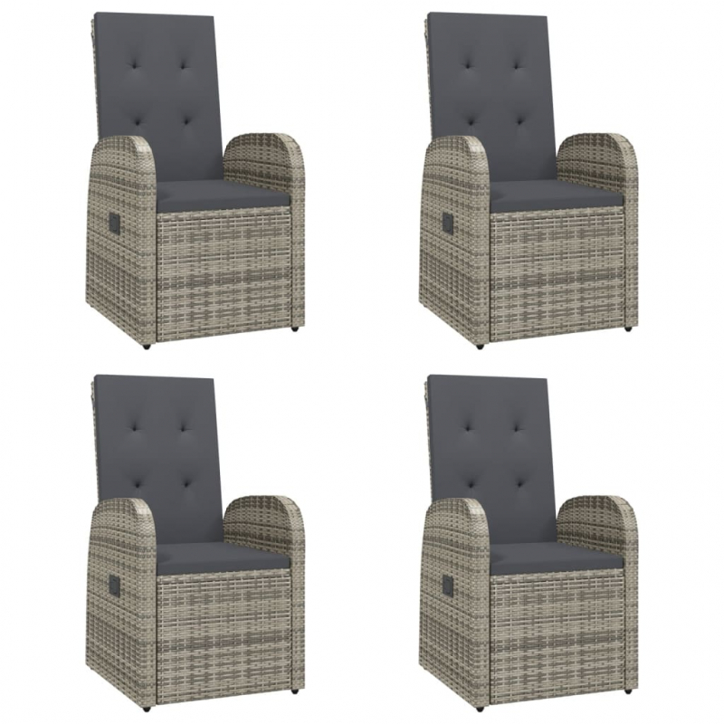 Mit ihrem eleganten und modernen Design ist diese trendige Garten-Essgruppe eine großartige Wahl für Mahlzeiten oder zum Entspannen in deinem Garten. Wetterfestes Material: PE-Rattan, auch als Poly Rattan bekannt, ist witterungsbeständig und pflegeleicht. Seine Oberfläche weist lange Zeit eine ansprechende Optik auf. Es bietet hohe Qualität, Komfort und einen ästhetisches Look.Stabiler Rahmen: Dank der pulverbeschichteten Stahlrahmen ist die Outdoor-Essgruppe robust, stabil und für den täglichen Einsatz im Außenbereich bestens geeignet.Praktische Tischplatte: Die robuste Tischplatte bietet den perfekten Platz für Speisen, Getränke und einige Dekoartikel.Modulares Design: Die Outdoor-Essgruppe lässt sich flexibel und leicht umstellen. Du kannst sie auch mit anderen modularen Segmenten aus unserem Webshop kombinieren, um deine ganz persönliche Essgruppe zu erstellen!Liegefunktion: Diese Gartensessel sind mit Liegefunktion ausgestattet, sodass sich die Rückenlehne je nach Bedarf verstellen lässt.Bequemes Sitzgefühl: Die Rückenlehne verleiht dem Gartenstuhl höchsten Sitzkomfort. Zum hohen Sitzkomfort tragen auch die dick gepolsterten Kissen bei. Gut zu wissen:Um die Montage so einfach wie möglich zu machen, wird jedes Produkt mit einer Anleitung geliefert. Hinweis:Damit deine Gartenmöbel lange schön bleiben, empfehlen wir dir, sie mit einer wasserdichten Hülle zu schützen.