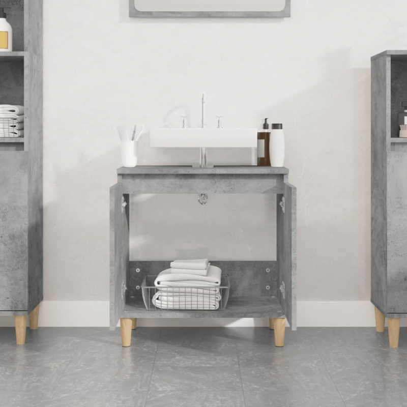 Dieser Waschbeckenunterschrank ist eine großartige Bereicherung für dein Badezimmer und verleiht ihm ein ordentliches und auffälliges Aussehen! Langlebiges Material: Holzwerkstoff ist ein Material von außergewöhnlicher Qualität mit glatter Oberfläche, das sich durch Festigkeit, Stabilität und Feuchtigkeitsbeständigkeit auszeichnet. Aus Holzwerkstoff gefertigt, lässt sich dieser Badschrank einfach reinigen.Reichlich Stauraum: Der Waschbeckenunterschrank verfügt über ein großes Fach, das zusätzlichen Stauraum für Gegenstände in deinem Badezimmer bietet. Die Oberplatte des Schranks bietet den idealen Platz für das Waschbecken.Holzbeine: Die Holzbeine verleihen dem Waschbeckenschrank Robustheit und Stabilität.Praktische Türen: Bewahre wichtige Sachen hinter den Türen in diesem Badschrank auf, um sie vor Staub zu schützen. Gut zu wissen:Das Waschbecken ist nicht im Lieferumfang enthalten. Achtung:Um ein Umkippen zu vermeiden, sollte dieses Produkt mit der mitgelieferten Wandhalterung gesichert werden.