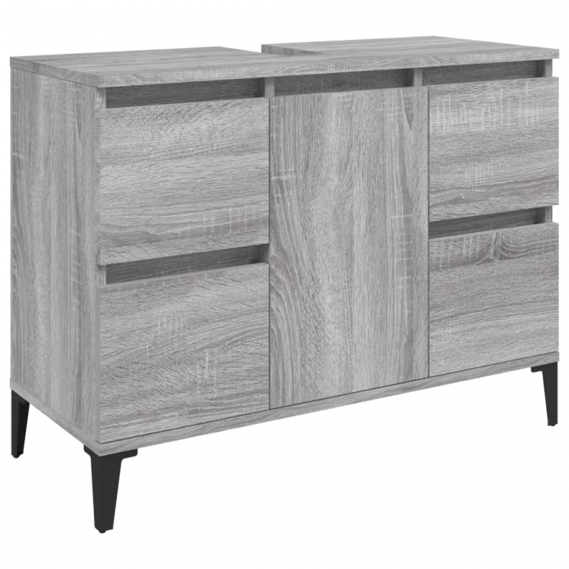Dieser Waschbeckenunterschrank ist eine großartige Bereicherung für dein Badezimmer und verleiht ihm ein ordentliches und auffälliges Aussehen! Langlebiges Material: Holzwerkstoff ist ein Material von außergewöhnlicher Qualität mit glatter Oberfläche, das sich durch Festigkeit, Stabilität und Feuchtigkeitsbeständigkeit auszeichnet.Viel Stauraum: Der Waschbeckenschrank verfügt über 4 Schubladen und 1 Fach mit einer Tür, die verschiedene Aufbewahrungsmöglichkeiten und zusätzlichen Platz zum Aufbewahren von Gegenständen in deinem Badezimmer bieten. Die Oberseite des Unterschranks ist ideal für die Platzierung des Waschbeckens.Metallfüße: Die Metallfüße verleihen ihm eine moderne und angenehme Optik und sorgen gleichzeitig für Stabilität.Einfache Reinigung: Die Badezimmermöbel lassen sich leicht mit einem feuchten Tuch reinigen. Achtung:Um ein Umkippen zu vermeiden, sollte dieses Produkt mit der mitgelieferten Wandhalterung gesichert werden. Gut zu wissen:Um die Montage so einfach wie möglich zu machen, wird jedes Produkt mit einer Anleitung geliefert.Das Waschbecken ist nicht im Lieferumfang enthalten.