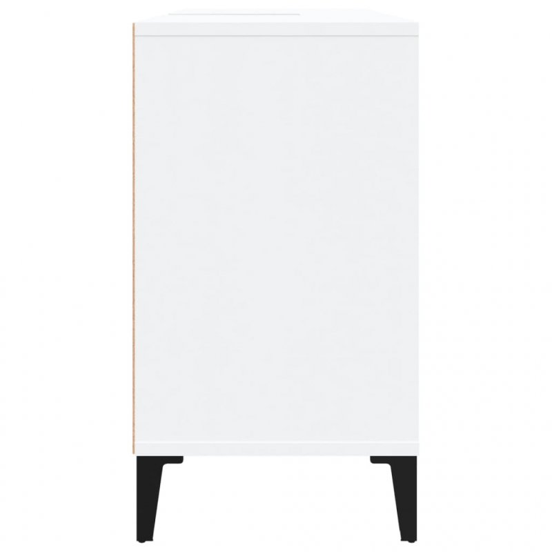 Dieser Waschbeckenunterschrank ist eine großartige Bereicherung für dein Badezimmer und verleiht ihm ein ordentliches und auffälliges Aussehen! Langlebiges Material: Holzwerkstoff ist ein Material von außergewöhnlicher Qualität mit glatter Oberfläche, das sich durch Festigkeit, Stabilität und Feuchtigkeitsbeständigkeit auszeichnet.Viel Stauraum: Der Waschbeckenschrank verfügt über 5 Fächer und eine Tür, die verschiedene Aufbewahrungsmöglichkeiten und zusätzlichen Platz zum Verstauen von Gegenständen in deinem Badezimmer bieten. Die Oberseite des Unterschranks ist ideal für die Platzierung des Waschbeckens.Metallfüße: Die Metallfüße verleihen ihm eine moderne und angenehme Optik und sorgen gleichzeitig für Stabilität.Einfache Reinigung: Die Badezimmermöbel lassen sich leicht mit einem feuchten Tuch reinigen. Achtung:Um ein Umkippen zu vermeiden, sollte dieses Produkt mit der mitgelieferten Wandhalterung gesichert werden. Gut zu wissen:Um die Montage so einfach wie möglich zu machen, wird jedes Produkt mit einer Anleitung geliefert.Das Waschbecken ist nicht im Lieferumfang enthalten.