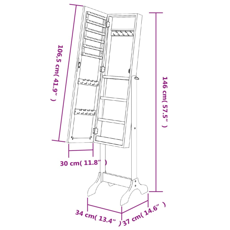 Dieser freistehende Spiegel mit seinem eleganten Design ist eine tolle dekorative Ergänzung für deinen Flur, dein Schlafzimmer, dein Ankleidezimmer, deine Garderobe usw. Langlebiges Material: Holzwerkstoff ist ein Material von außergewöhnlicher Qualität mit glatter Oberfläche, das sich durch Festigkeit, Stabilität und Feuchtigkeitsbeständigkeit auszeichnet.Klares Spiegelbild: Der Glasspiegel bietet eine klare Spiegelung. So kannst du ein schönes und natürliches Spiegelbild genießen, wenn du vor dem Schminkspiegel steht.Zusätzlicher Stauraum: Dieser Bodenspiegel bietet reichlich Stauraum hinter dem Spiegel, damit du leicht auf deine Sachen zugreifen kannst.Einzigartige Dekoration: Der Standspiegel bringt sofort einen Hauch von Eleganz, Glamour und Romantik in deinen Wohnbereich.