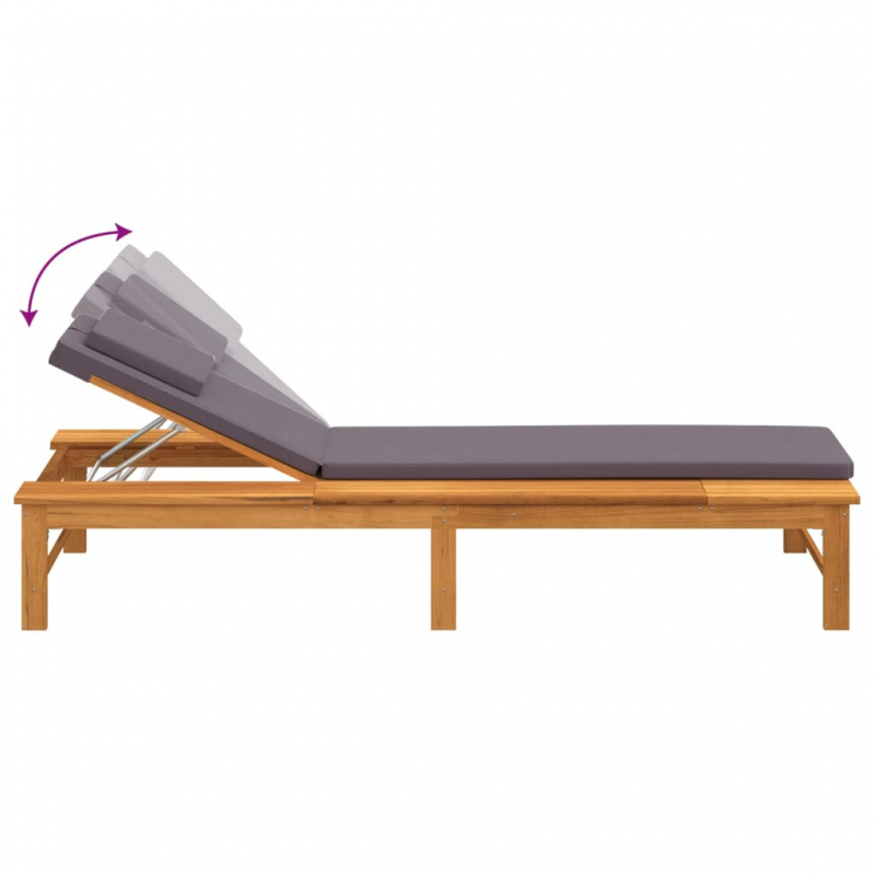 Auf dieser trendigen Sonnenliege aus Holz findest du immer einen bequemen Platz zum Entspannen auf deiner Terrasse oder im Garten. Massives Akazienholz: Massives Akazienholz ist ein schönes Naturmaterial. Akazienholz ist ein tropisches Hartholz, das dicht, robust und langlebig ist. Der Rahmen der Liege besteht aus massivem Akazienholz mit Ölfinish, was sie stabil und pflegeleicht macht.Verstellbare Rückenlehne: Die Rückenlehne dieser komfortablen Liege lässt sich in 4 Positionen verstellen, um höchste Entspannung zu bieten.Extra Komfort: Die dick gepolsterte Auflage und das Kissen bieten höchsten Komfort beim Entspannen auf der Sonnenliege.Praktisches Design: Die zwei flachen Seitenteile bieten den perfekten Platz, um dein Handy, ein Buch, Snacks oder Getränke griffbereit aufzubewahren. Hinweis:Damit deine Gartenmöbel lange schön bleiben, empfehlen wir dir, sie mit einer wasserdichten Hülle zu schützen.