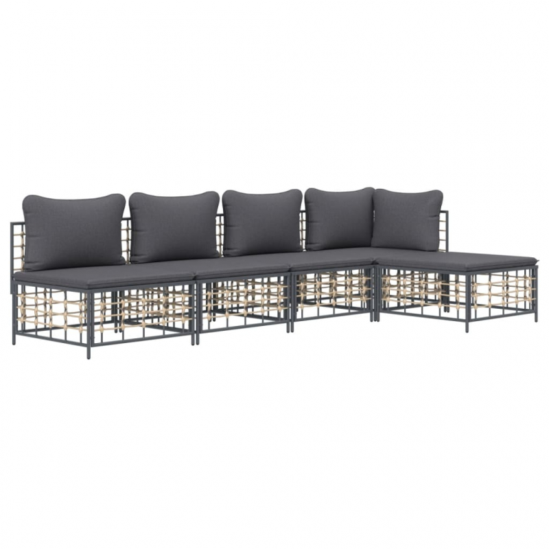 5-tlg. Garten-Lounge-Set mit Kissen Anthrazit Poly Rattan