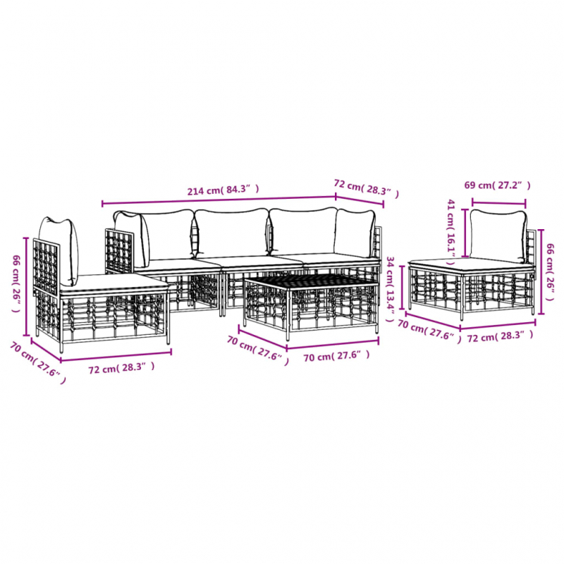 6-tlg. Garten-Lounge-Set mit Kissen Anthrazit Poly Rattan