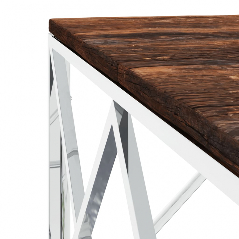 Mit seinem praktischen und optisch ansprechenden Design wird dieser Couchtisch ein echter Hingucker in deinem Zimmer sein. Langlebiges Material: Edelstahl ist ein robustes Material, das auf eine lange Lebensdauer ausgelegt ist. Zudem ist es sehr korrosions- und rostbeständig.Massives Altholz: Massives Altholz besteht aus wiederverwendeten Holzarten wie Teakholz, Mangoholz, Kiefernholz und Buche. Diese Materialien werden aus alten Gebäuden wie Fabriken, Schuppen und Booten recycelt. Da jedes Stück handgefertigt ist, können die Farben bei jedem Produkt variieren.Glatte Tischplatte: Die glatte Tischplatte lässt sich mit einem feuchten Tuch leicht reinigen und bietet den perfekten Platz für Snacks, Getränke oder einige Dekoartikel.Vielseitig einsetzbar: Dieser Beistelltisch kann als Couchtisch, Ablagetisch oder Wohnzimmertisch verwendet werden. Gut zu wissen:Farben und Maserungen variieren von Möbelstück zu Möbelstück und machen jedes Stück zu einem Unikat. Die Lieferung erfolgt nach dem Zufallsprinzip, wodurch die Exklusivität und Individualität deines Möbels gewährleistet ist.