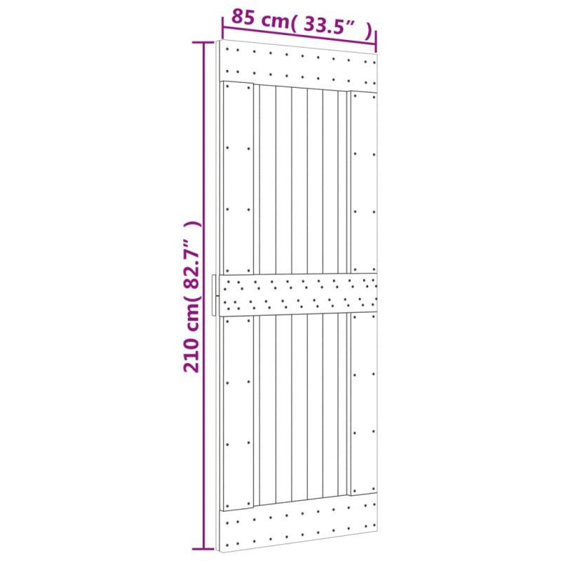 Diese Tür aus massivem Kiefernholz verschönert dein Zuhause und macht es sicherer. Massives Kiefernholz: Die Innentür ist aus massivem Kiefernholz gefertigt. Massives Kiefernholz ist ein wunderschönes Naturmaterial. Kiefernholz weist eine gerade Maserung auf und die Aststellen verleihen dem Material seine charakteristische, rustikale Optik.Platzsparendes Design: Diese Schiebetür spart Platz und lässt jeden Raum geräumiger wirken. Sie ist die erste Wahl für eine schlichte und stimmungsvolle Inneneinrichtung im modernen Stil. Vielseitig einsetzbar: Die Scheunentür kann sowohl an Holzwänden als auch an Betonwänden angebracht werden. Sie eignet sich ideal für Schlafzimmer, Küchen, Scheunen, Garagen usw. Gut zu wissen:Um deine NARVIK Tür mit schönen Schiebetürbeschlägen zu vervollständigen, sieh dir unser SKIEN Sortiment an. Vergewissere dich vor dem Kauf, dass die Länge der Schiebetür-Laufschiene zu der Größe deiner Tür passt.