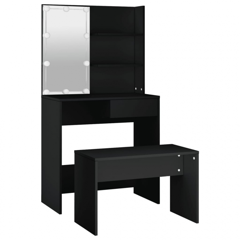 Das trendige Schminktisch-Set verleiht deinem Schlafzimmer einen zeitlosen, raffinierten Look. Das Schminktisch-Set mit LED-Beleuchtung ist eine perfekte Ergänzung für deine Schlafzimmereinrichtung und hält auch deine Kosmetika immer griffbereit! Stabiles Material: Holzwerkstoff ist ein Material hoher Qualität mit glatter Oberfläche, das sich durch Festigkeit, Stabilität und Feuchtigkeitsbeständigkeit auszeichnet.Allzweckspiegel: Der Schminktisch mit Spiegel ist perfekt für deine tägliche Schönheitsroutine. Mit dem Spiegel kannst du dein Gesicht pflegen und auch dein Make-up auftragen!Viel Stauraum: Der Schminktisch mit Hocker bietet viel Platz für einfachen Zugriff auf Make-up, Schmuck und anderen Accessoires.LED-Beleuchtung: Der Schminktisch verfügt auch über LED-Lampen mit USB, die einfach von Warmweiß auf Kaltweiß umgeschaltet werden können. Dabei beleuchten die LED-Lampen rund um den Spiegel dein Gesicht optimal.Vielseitig einsetzbar: Dieses Schminktisch-Set eignet sich für verschiedene Bereiche, sei es Schlafzimmer, Ankleide oder jeden anderen Raum, in dem du es aufstellen möchtest. Achtung:Um ein Umkippen zu vermeiden, sollte dieses Produkt mit der mitgelieferten Wandhalterung gesichert werden.