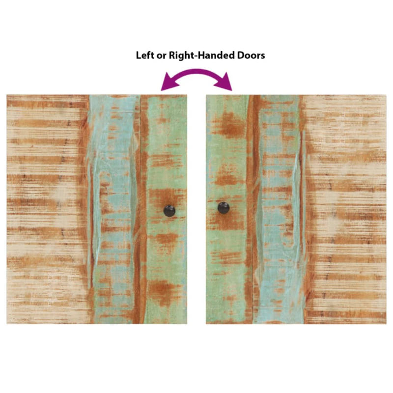 Dieses praktische Badmöbel-Set mit geräumigem Stauraum ist eine hervorragende Ergänzung für dein Badezimmer und verleiht ihm ein aufgeräumtes und eindrucksvolles Aussehen! Massives Altholz: Der Schrank ist aus massivem Altholz in Kombination mit Holzwerkstoff gefertigt. Altholz ist ein wiederverwertetes Holz, sei es Teak, Mangoholz, Kiefernholz oder Buchenholz. Diese Hölzer werden aus alten Gebäuden wie Fabriken, Schuppen und Booten recycelt.Ausreichend Stauraum: Der Badezimmerschrank bietet verschiedene Aufbewahrungsmöglichkeiten und geräumigen Platz für die Aufbewahrung von Gegenständen in deinem Badezimmer.Stabile Beine: Die Eisenbeine verleihen dem Badezimmerschrank Robustheit und Stabilität.Praktisches Design: Die Oberseite des Waschbeckenunterschranks ist ideal für die Unterbringung des Waschbeckens.Klares Spiegelbild: Der Glasspiegel bietet eine klare Spiegelung. So kannst du ein schönes und natürliches Spiegelbild genießen, wenn du vor dem Spiegel steht. Achtung:Um ein Umkippen zu vermeiden, sollte dieses Produkt mit der mitgelieferten Wandhalterung gesichert werden.Gut zu wissen:Das Waschbecken ist nicht im Lieferumfang enthalten.Schrauben und Dübel sind für die Befestigung an der Wand nicht im Lieferumfang enthalten. Wir empfehlen, speziell für deine Wände geeignete Schrauben und Dübel zu finden und zu verwenden. Im Zweifelsfall wende dich an einen Fachmann. Bitte lese und befolge jeden Schritt der Anweisungen.Jedes Stück ist ein Unikat, das in Farbe und Maserung variiert. Die Lieferung erfolgt in zufälliger Reihenfolge, wodurch die Exklusivität und Individualität deines Produkts gewährleistet wird.
