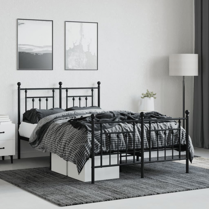 Bettgestell mit Kopf- und Fußteil Metall Schwarz 120x200 cm