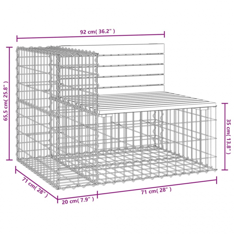 Gartenbank aus Gabionen 92x71x65,5 cm Massivholz Kiefer