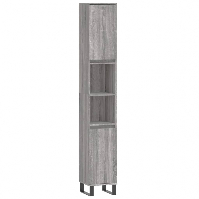 3-tlg. Badmöbel-Set Grau Sonoma Holzwerkstoff