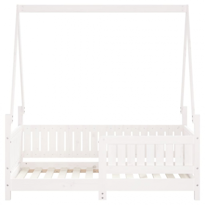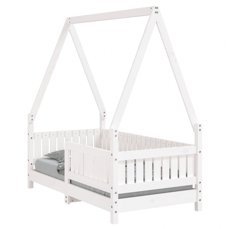 Mit diesem fantastischen Kinderbett aus Holz bietest du deinen Kleinen einen eigenen lustigen Platz! Massives Kiefernholz: Das Kinderbett ist aus massivem Kiefernholz gefertigt. Massives Kiefernholz ist ein wunderschönes Naturmaterial. Kiefernholz weist eine gerade Maserung auf und die Aststellen verleihen dem Material seine charakteristische, rustikale Optik.Robuste Latten: Das Kinderbett ist mit Holzlatten versehen, die für einen festen Halt, Belüftung und Stabilität sorgen.Design in Hausform: Dieses Kleinkinderbett weist ein durchdachtes Design mit einem Rahmen in Hausform auf, an dem du Bettvorhänge aufhängen kannst, um Privatsphäre für dein Kind zu schaffen.Durchdachtes Design: Dank der geringen Höhe des Einzelbettes können Kinder leicht ins Bett ein- und aussteigen.