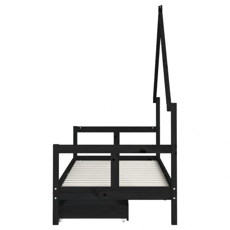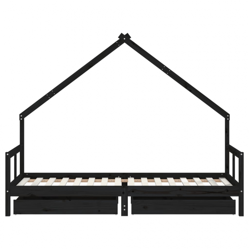 Mit diesem fantastischen Kinderbett aus Holz bietest du deinen Kleinen einen eigenen lustigen Platz! Massives Kiefernholz: Das Kinderbett ist aus massivem Kiefernholz gefertigt. Massives Kiefernholz ist ein wunderschönes Naturmaterial. Kiefernholz weist eine gerade Maserung auf und die Aststellen verleihen dem Material seine charakteristische, rustikale Optik.Robuste Latten: Das Kinderbett ist mit Holzlatten versehen, die für einen festen Halt, Belüftung und Stabilität sorgen.Design in Hausform: Mit seinem coolen und doch schlichten Design macht dieses Kleinkinderbett das Schlafengehen zu einem lustigen Erlebnis. Es bietet viele Möglichkeiten zum Spielen und Aufbauen einer kleinen Kinderwelt, um Kreativität und Fantasie anzuregen.Mit Schubladen: Die mitgelieferten Schubladen bieten reichlich Platz für die Aufbewahrung von Kleinspielzeug, Kleidung und Bettzeug, um für Ordnung im Kinderzimmer zu sorgen.Durchdachtes Design: Dank der geringen Höhe des Einzelbettes können Kinder leicht ins Bett ein- und aussteigen.