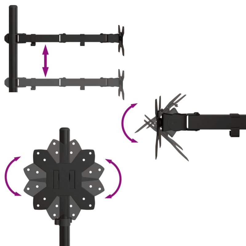 Hast du dich jemals über zu wenig Platz auf dem Schreibtisch beschwert? Hast du schon jemals Nacken- und Schulterschmerzen bei langen Arbeitsstunden am Büro empfunden? Dann ist diese verstellbare Monitorhalterung genau das Richtige für dich! Vielfach verstellbar: Dieser Monitorständer lässt sich um 90° nach oben oder unten neigen, um 90° oder 120° nach links oder rechts schwenken und um 360° drehen. Du kannst auch die Höhe anpassen, um einen optimalen Betrachtungswinkel zu genießen. Zwei Montagemöglichkeiten: Diese Monitor-Tischhalterung kann auf zwei verschiedene Arten montiert werden: entweder mit einer C-Klemme oder über Kabeldurchführung. Sie eignet sich für Schreibtische mit einer Stärke zwischen 10 mm und 88 mm. Wähle einfach die bevorzugte Montageoption aus und schaffe zusätzlichen Platz auf deinem Schreibtisch.Laptop-Halterung und Kabelaufnahme: Diese Monitorhalterung ist mit einer Laptop-Halterung versehen, um zusätzlichen Platz auf deinem Schreibtisch zu schaffen. Die Tischhalterung verfügt auch über einen versteckten Clip für Kabel und einen Steckplatz für Inbusschlüssel, um für Ordnung auf deinem Schreibtisch zu sorgen. Einfache Montage: Diese Monitor-Tischhalterung wird samt Anweisungen und dem erforderlichen Montagezubehör geliefert und lässt sich daher ganz einfach am Schreibtisch anbringen. Robustes Material: Stahl ist ein außergewöhnlich hartes und starkes Material. Er bietet Robustheit und Stabilität. Aus Stahl gefertigt, ist diese VESA-Monitorhalterung auf eine jahrelange Lebensdauer ausgelegt!