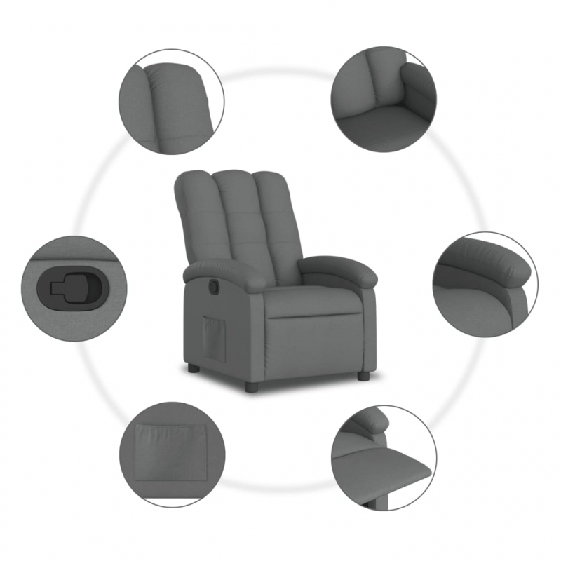 Lehne sich zurück und entspanne sich in diesem äußerst bequemen Relaxsessel! Manuelle Liegefunktion: Dieser Ruhesessel lässt sich mittels des seitlichen Griffs verstellen. So kannst du das Fußteil und die Rückenlehne manuell in jede beliebige Position bringen, um die komfortabelste Position zu genießen. Die Rückenlehne lässt sich max. 135 Grad nach hinten verstellen. Durch einfaches Ziehen am Griff wird sie schnell in die ursprüngliche Position zurückgestellt.Bequemes Sitzerlebnis: Die dick gepolsterte Sitzfläche, die Rückenlehne und die breiten Armlehnen sorgen für ein behagliches und wohliges Sitzgefühl. Der Bezug aus Stoff weist eine schlichte und saubere Optik auf und ist auch atmungsaktiv und langlebig.Praktische Seitentasche: Dieser Sessel verfügt über eine Seitentasche, in der du wichtige Sachen griffbereit aufbewahren kannst.Solider und stabiler Rahmen: Der Rahmen aus Holz und Metall sorgt für eine solide Struktur und hohe Stabilität. Dieser TV-Sessel ist bequem und langlebig.