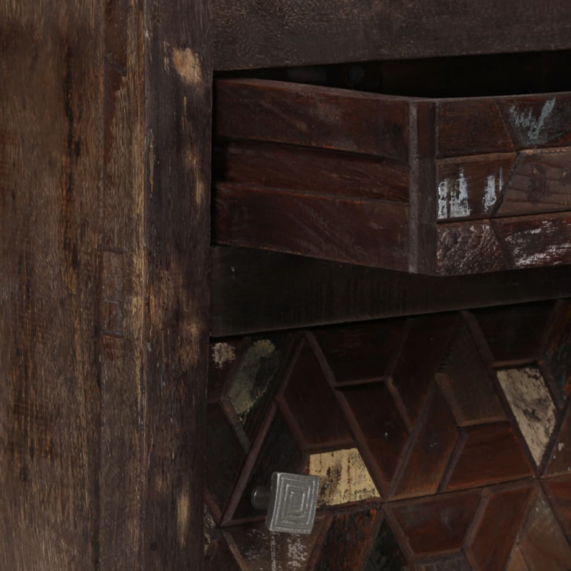 Dieser Nachttisch aus Massivholz ist sowohl eine dekorative als auch eine praktische Bereicherung für dein Interieur. Er lässt sich auch als Beistellschrank, Pflanzenständer oder Telefonständer verwenden. Der Schrank ist aus massivem Altholz gefertigt, das aus Balken, Fußböden und Stützbalken alter, abgerissener Gebäude stammt. Altholz kann aus verschiedenen Holzarten wie Kiefer, Teak, Buche, Eiche, Zeder, Mangoholz, Akazie usw. bestehen. Dies bedeutet, dass das wiedergewonnene Holz die Eigenschaften dieser verschiedenen Holzarten beibehält. Altholz ist bereits gealtert, verwittert und getrocknet, sodass es nicht schrumpft oder sich verbiegt. Die optisch ansprechende Holzmaserung macht jedes Möbelstück zu einem Unikat. Gebrauchsspuren und die sichtbare Maserung erzählen die reiche Geschichte des Holzes und verleihen dem Schrank einen warmen und authentischen Look. Jeder Schritt des Fertigungsprozesses wird mit größter Sorgfalt ausgeführt, sei es Polieren, Anstreichen oder Lackieren. Der Nachttisch schafft reichlich Stauraum, um verschiedene Kleinigkeiten übersichtlich und griffbereit zu halten. Die Oberplatte bietet Platz für einen Wecker, ein Glas Wasser oder Dekoartikel wie Bilderrahmen. Die Stahlbeine verleihen ihm Stabilität und tragen auch zu seinem markanten industriellen Stil bei. Der Zusammenbau ist leicht. Wichtiger Hinweis: Farben und Maserungen können von Möbelstück zu Möbelstück variieren, was jeden unserer Nachttische zu einem Unikat macht. Die Lieferung erfolgt in zufälliger Reihenfolge, was die Exklusivität und Individualität deines Produkts gewährleistet.