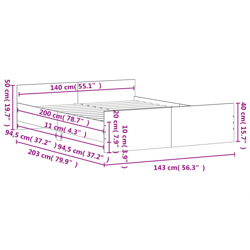 Bettgestell mit Kopf- und Fußteil Betongrau 140x200 cm