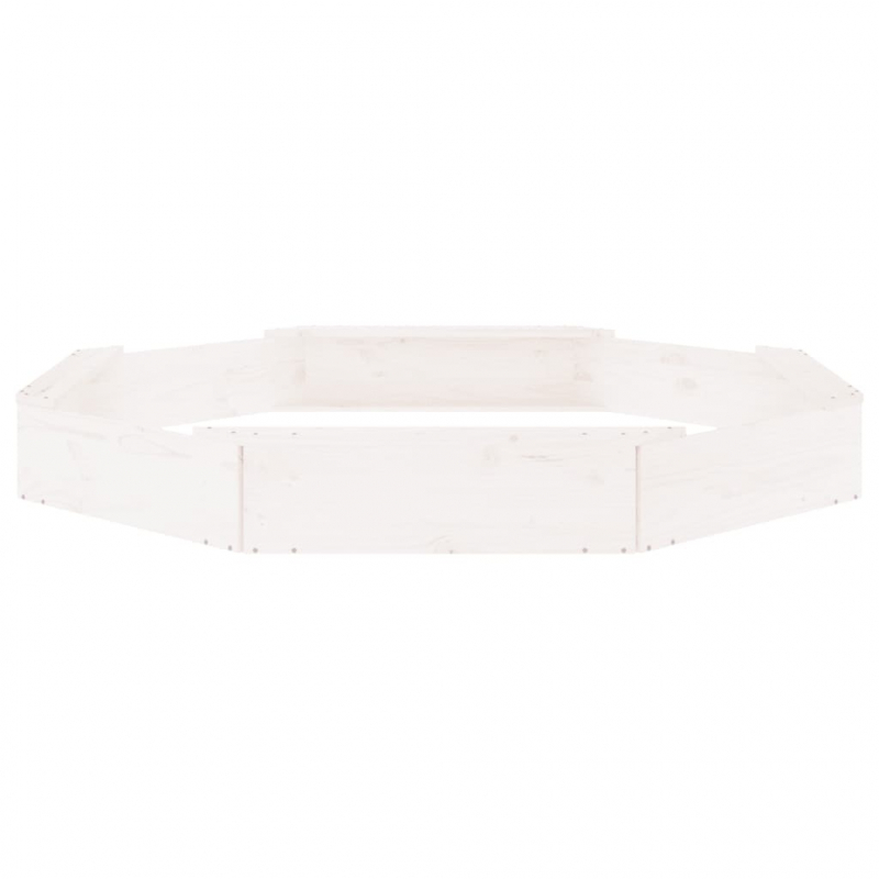 Sandkasten mit Sitzen Weiß Achteck Massivholz Kiefer