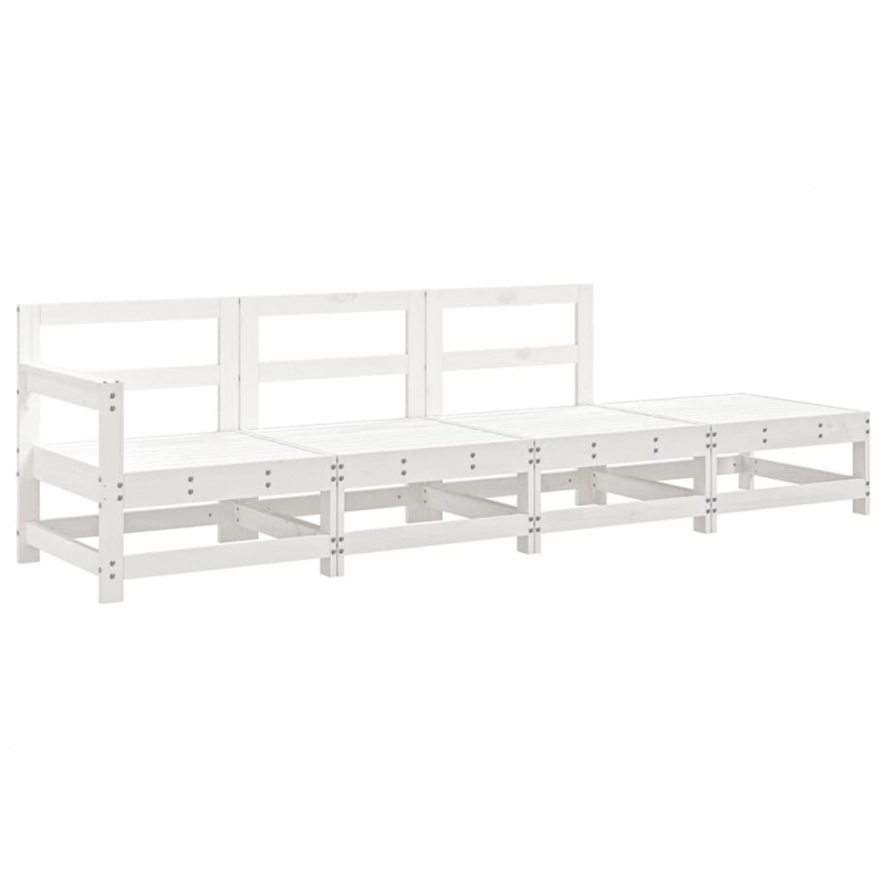 4-tlg. Garten-Lounge-Set Weiß Massivholz Kiefer