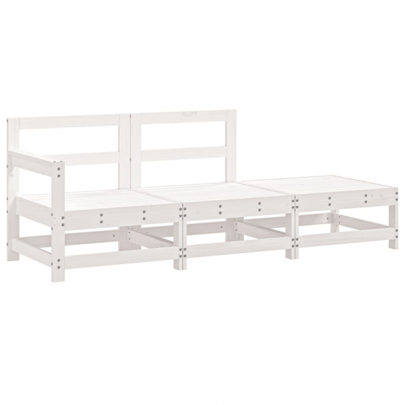 3-tlg. Garten-Lounge-Set Weiß Massivholz Kiefer